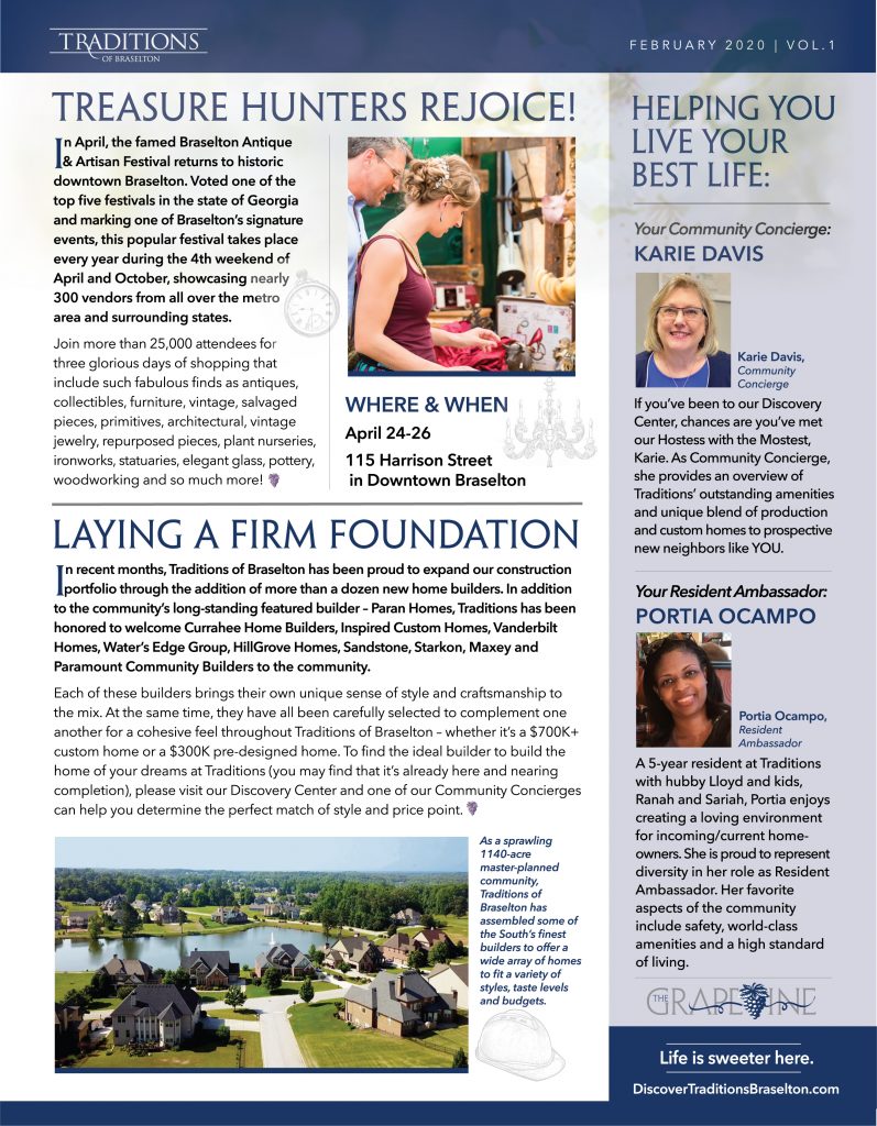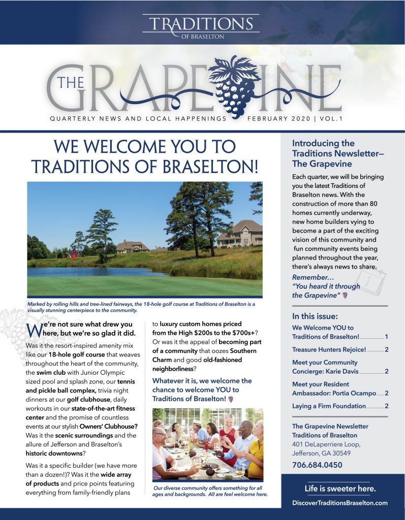 Join our email newsletter to stay updated on all the latest news, receive event invitations, and more! Life truly is sweeter at Traditions of Braselton.